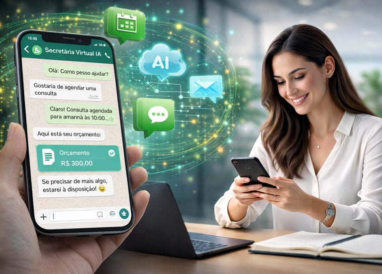 A Secretária Virtual com IA para WhatsApp é uma solução de atendimento automatizado que oferece agilidade, organização e eficiência no contato com clientes, mantendo uma comunicação humanizada e profissional.